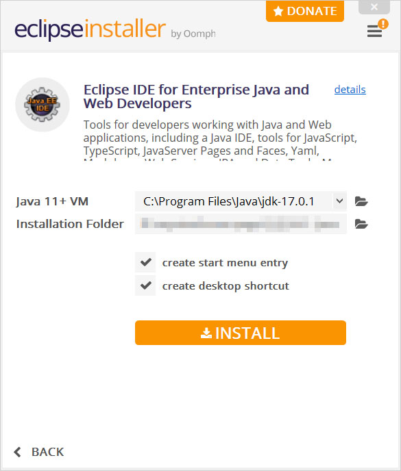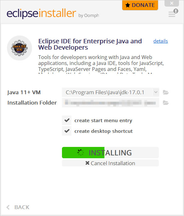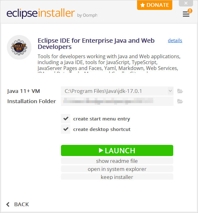 Installation Folder는 말 그대로 이클립스를 설치할 폴더입니다.