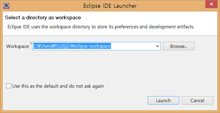 Use this as the default and do not ask again에 체크를 하면 다시는 경로 지정을 물어보지 않고,