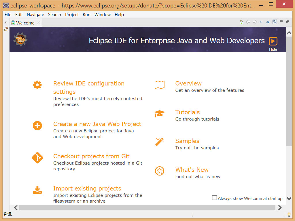강력한 자바 개발도구인 이클립스 설치 직후 무엇을 해야 하는지에 대한 글입니다. 정말 별 내용 없습니다. 별거 없지만, 처음 접하는 생소한 프로그램에 뭐부터 해야할지 몰라서 당황하시는 분