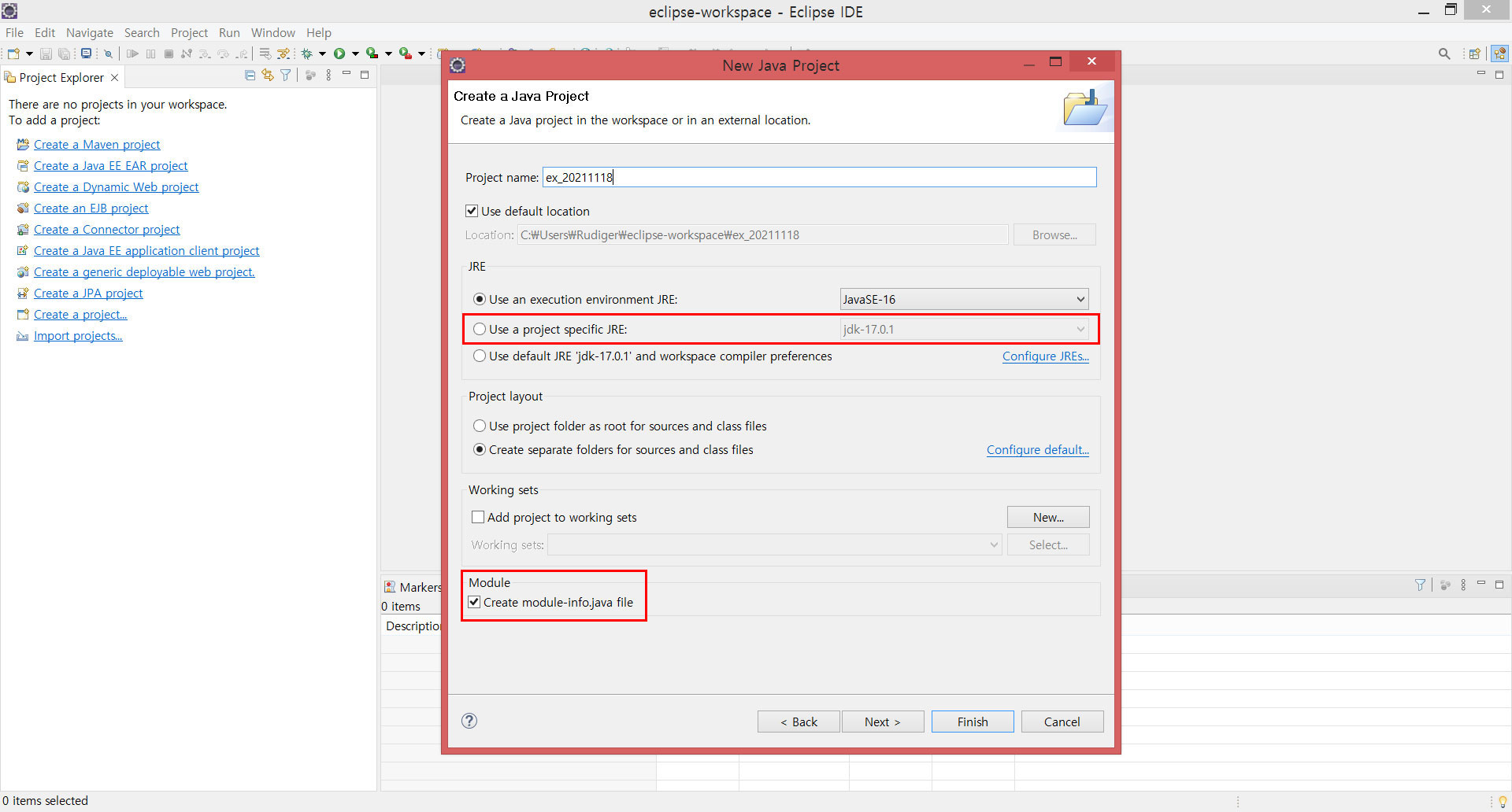 Java Build Path Problems Build path specifies execution environment javaSE-16. There are no JREs installed in the workspace that are strictly compatible with this environment. 이클립스에서 새 프..
