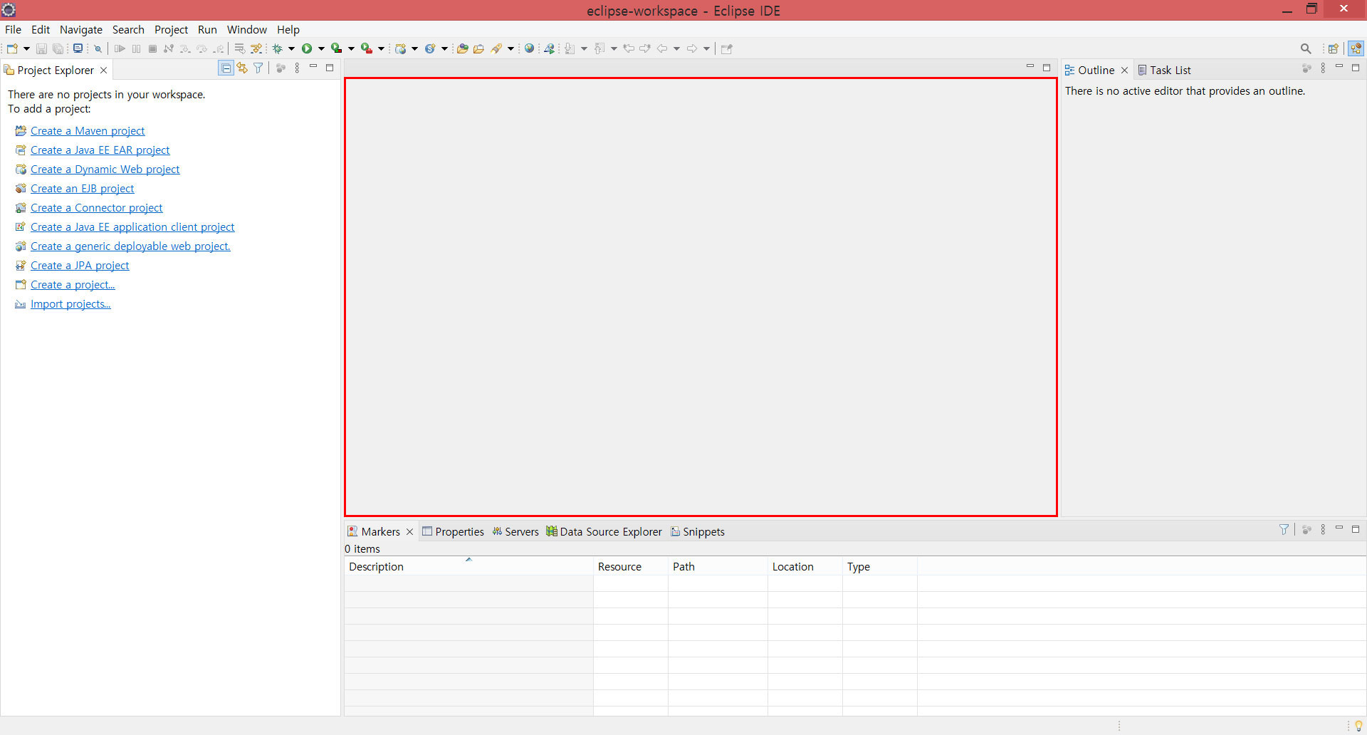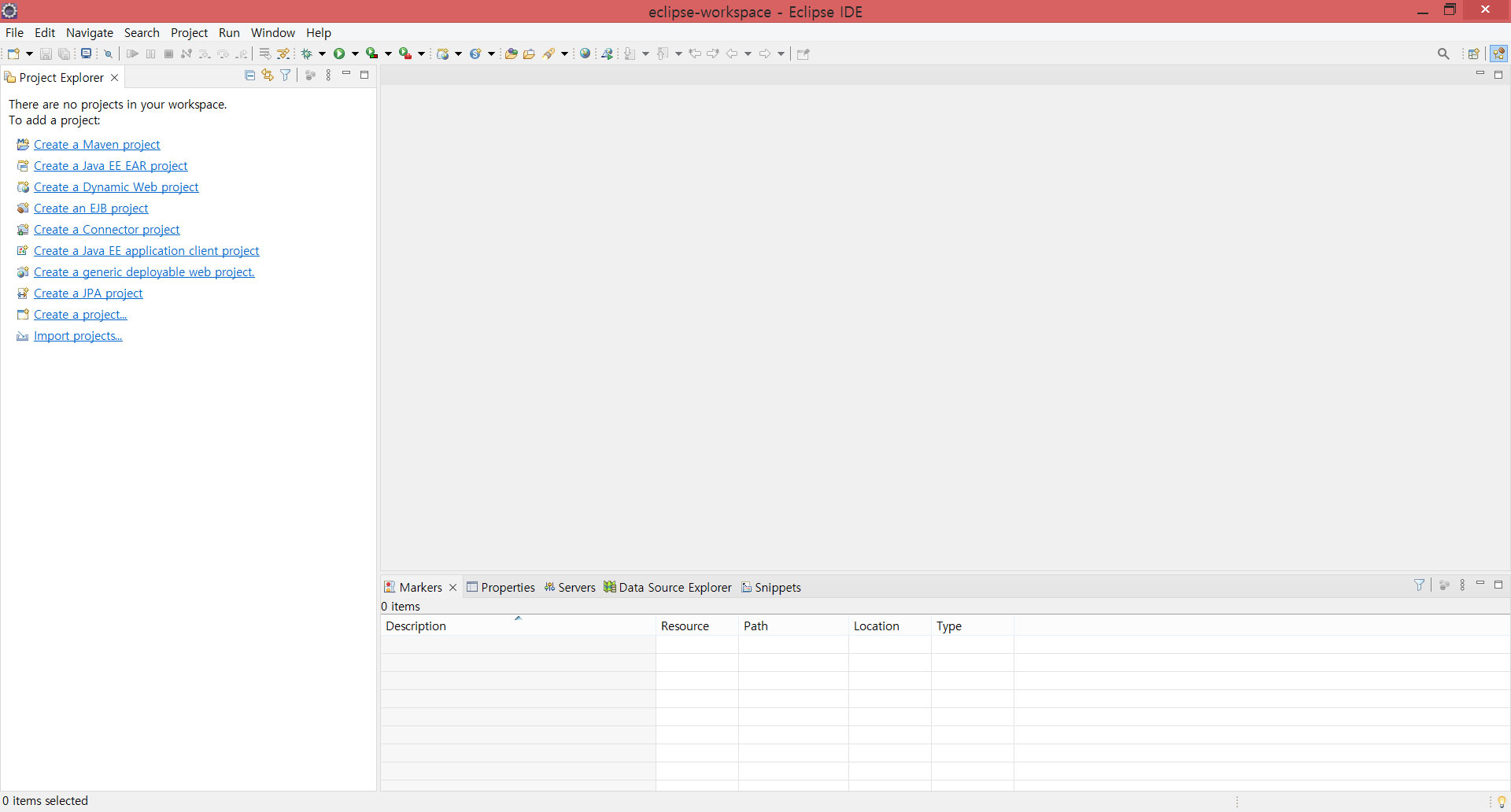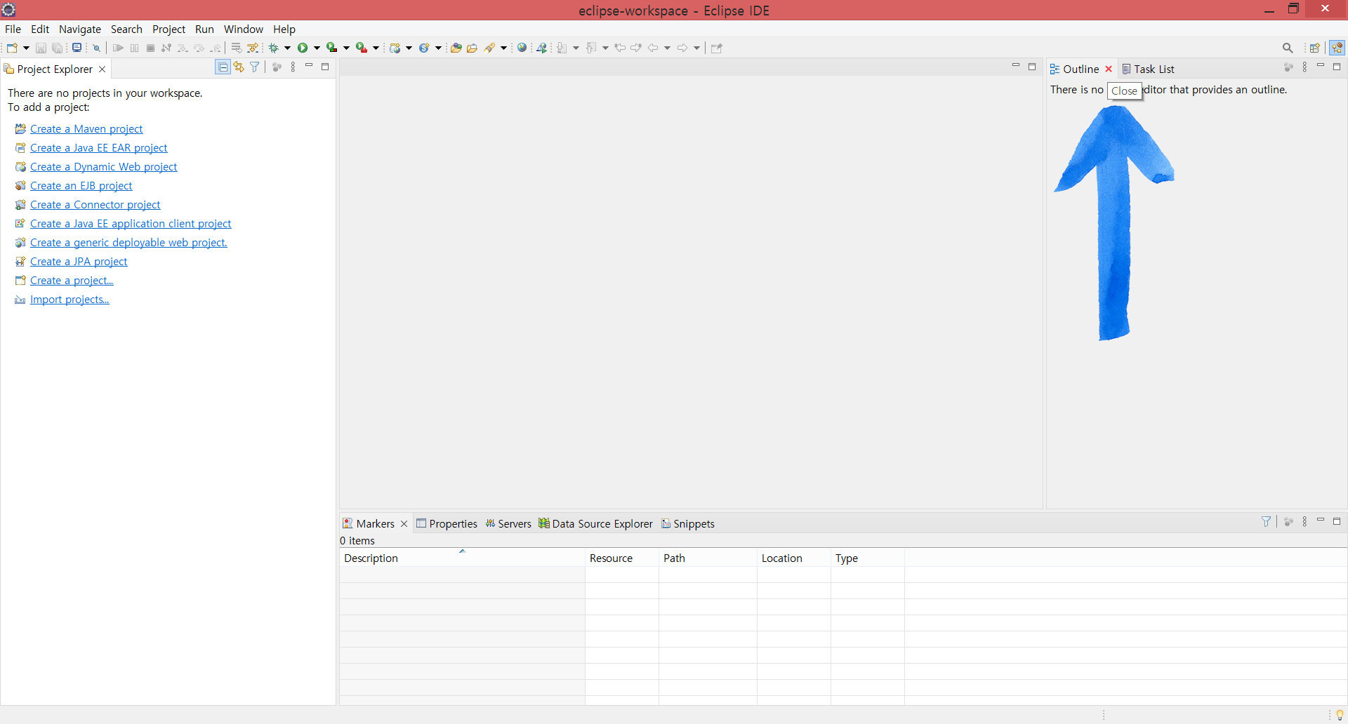 이클립스 설치 직후에는 아마도 이런 모양을 하고 있을 겁니다.