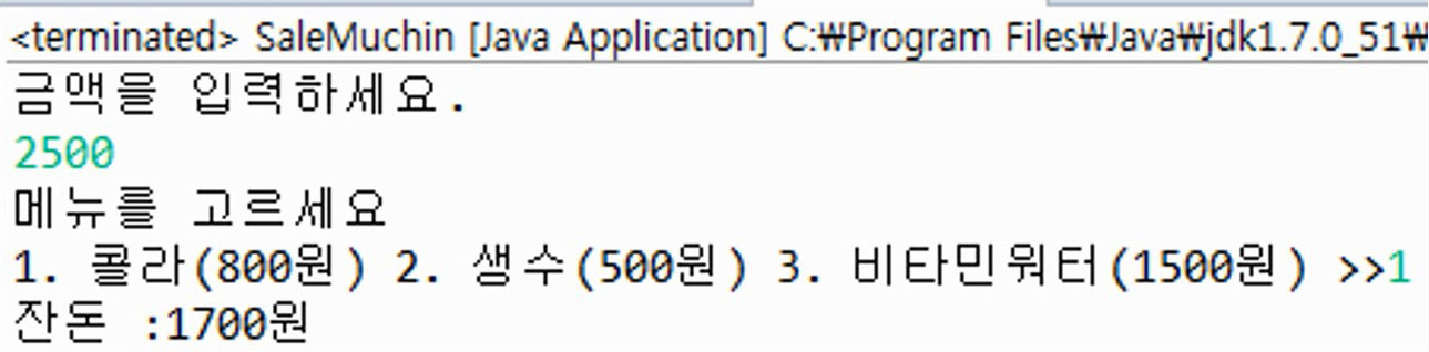 금액을 입력하고 메뉴를 고른 뒤 잔돈을 출력해 보세요.