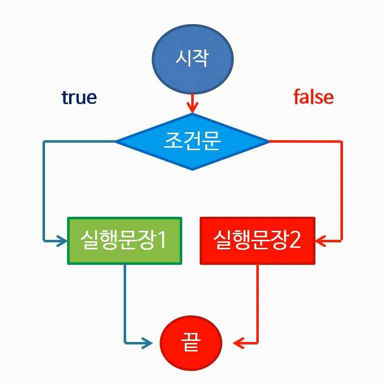 전에 공부한 단순 if문과의 차이점은 if문은 조건문이 true일 경우에만 실행할 문장이 있고, false면 그냥 다음으로 넘어갔지만, if-else문은 조건문이 false일 경우에도 실행할 문장이 따로 있습니다.