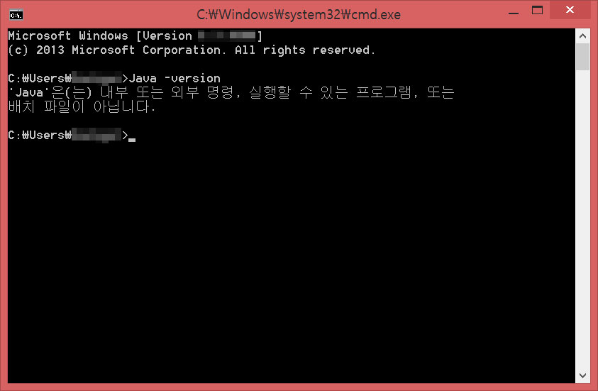 처음처럼 '내부 또는 외부 명령, 실행할 수 있는 프로그램, 또는 배치 파일이 아닙니다.' 라고 뜨지 않고 위와 같이 뜬다면 제대로 설치가 완료된 것입니다.