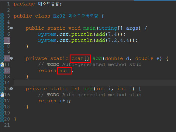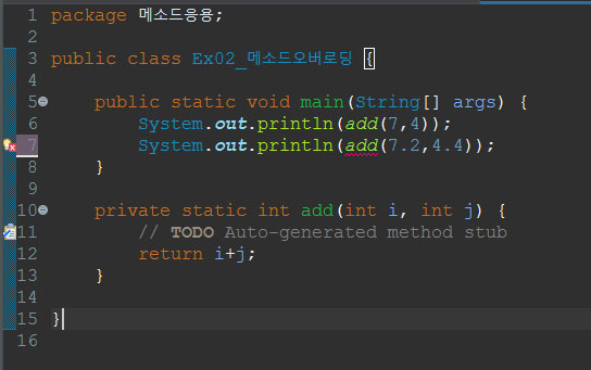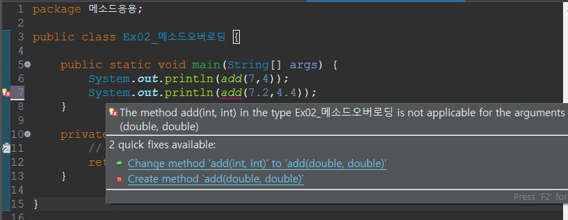 System.out.println(add(7,4)); 에서 에러가 뜹니다. 해결이 안 됩니다.