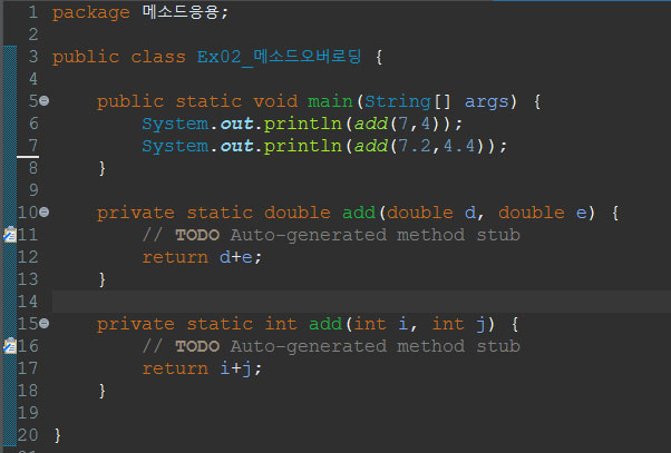 두 번째 방법은, 리턴 타입과 매개변수가 double 타입인 add()메소드를 만들어라고 합니다.