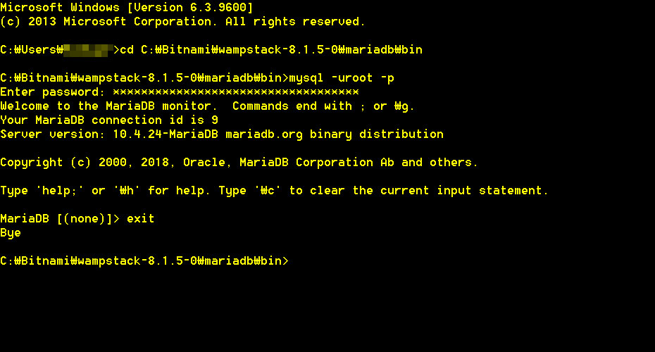 cd C:\Bitnami\wampstack-8.1.5-0\mariadb\bin