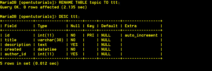RENAME TABLE 이전 테이블명 TO 새로운 테이블명;