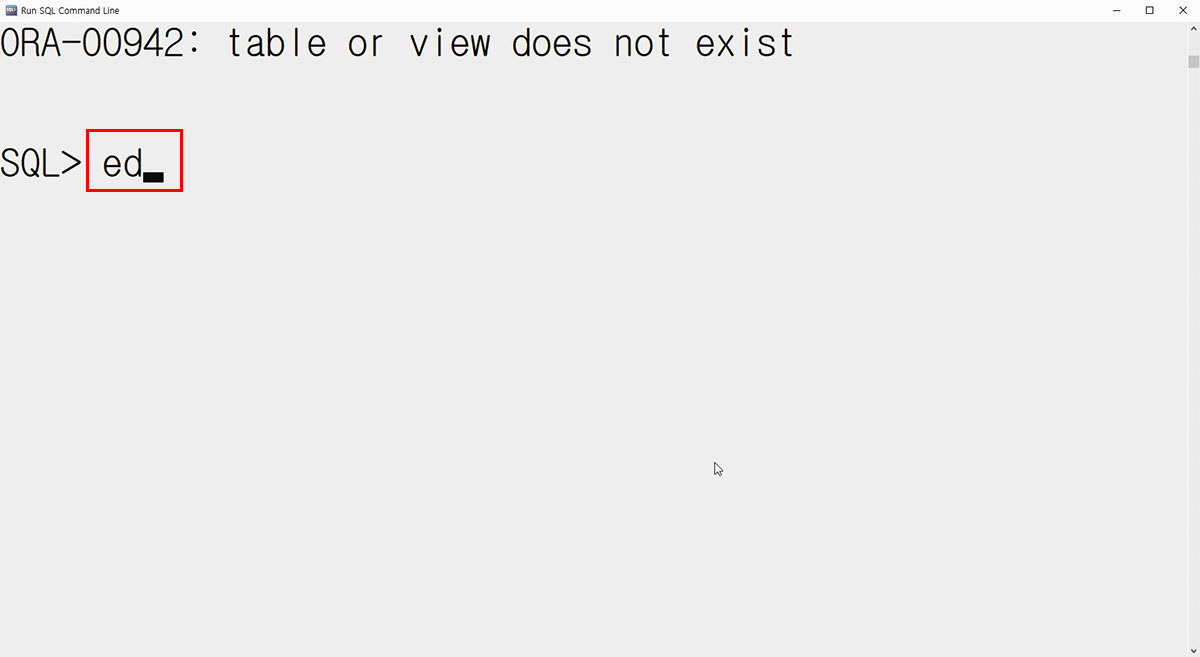 SQL 플러스에서 ed라고 치고 엔터를 치면 위와 같이 메모장이 뜹니다.