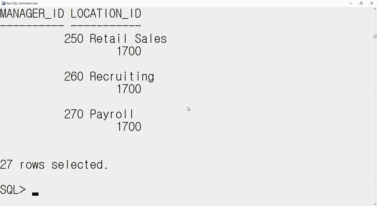 오라클 SQL, 줄이 안 맞는 테이블 보기 좋게 정렬하기