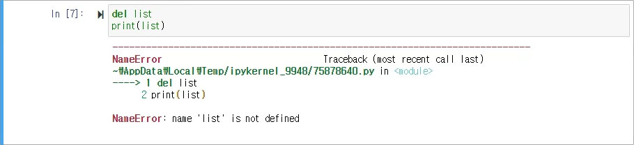 del은 인덱싱과 슬라이싱으로 값들을 삭제할 수도 있고,