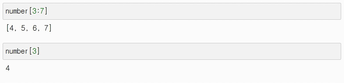 number[3:7]로 슬라이싱 한 숫자들인 4, 5, 6, 7에 7을 대입해서 4, 5, 6이라는 값은 사라졌습니다.